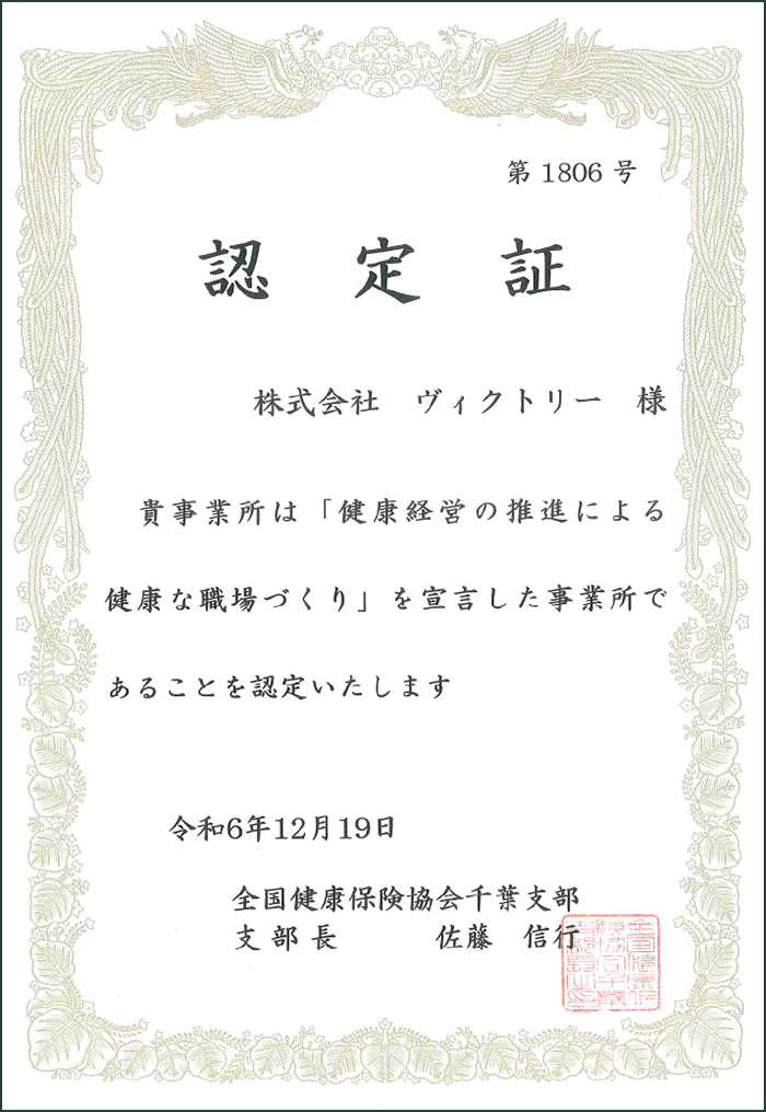 「健康経営の推進による健康な職場づくり」宣言の認定企業です